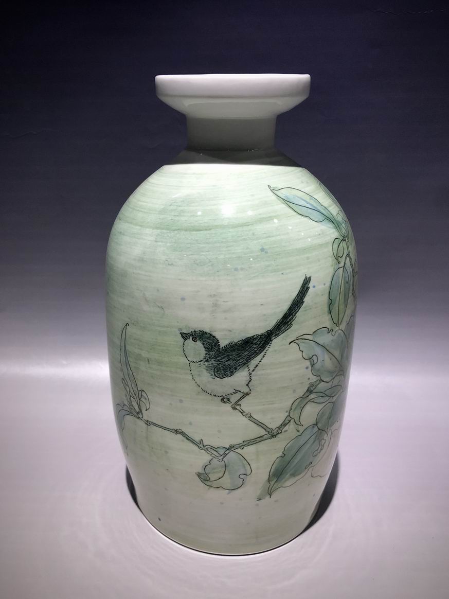 ·古宣紙底色效果花鳥瓷瓶
