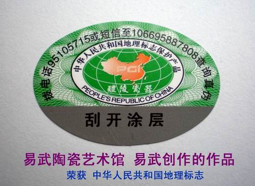 2007年9月 易武陶瓷艺术作品 荣获“国家地理标志醴陵瓷器”