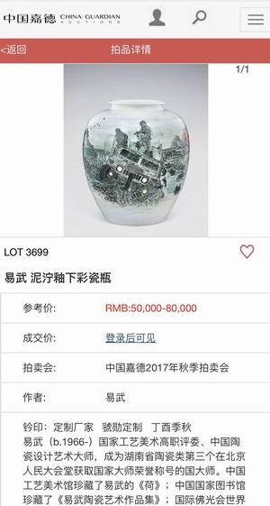 ●2017年12月,《泥泞》参加了中国嘉德国际拍卖有限公司秋拍,获得藏家珍藏